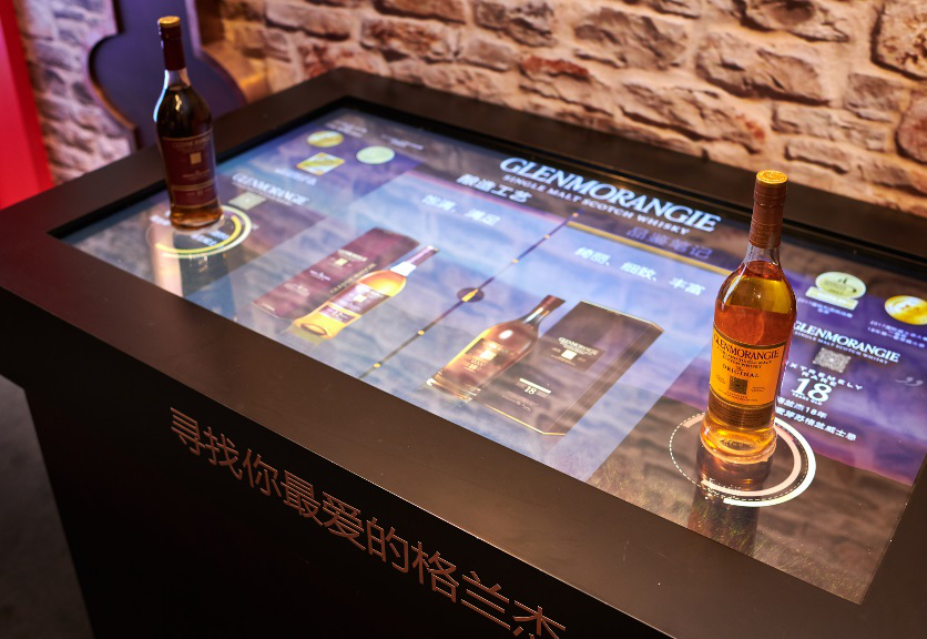 众所周知,格兰杰采用了闻名遐迩的5.14米高的蒸馏器,如同一个成年长颈鹿一样高。在格兰杰的展台,一面互动墙为你解析目前苏格兰最高蒸馏器如何赋予格兰杰纯净细腻的酒液以及优雅的花香果香。